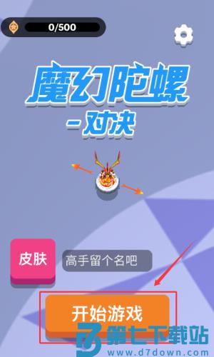 1、点击红框标注的橙色开始游戏按钮,进入魔幻陀螺对决。