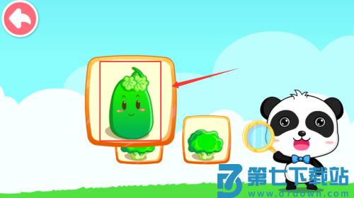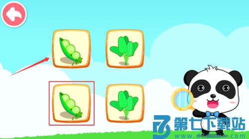 1、点击红框箭头指向的豌豆荚,学习蔬菜分类。