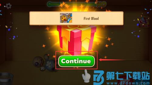 2、点击红框箭头指向的绿色Continue按钮,领取首胜奖励。