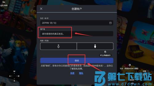 3、输入用户名后点击红框继续按钮,完成账户创建。