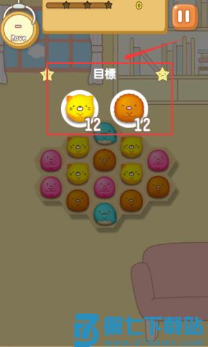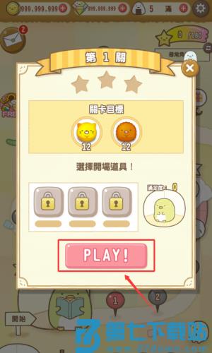 1、点击红框标注的粉色PLAY按钮,开始收集12个猫咪和熊头像。
