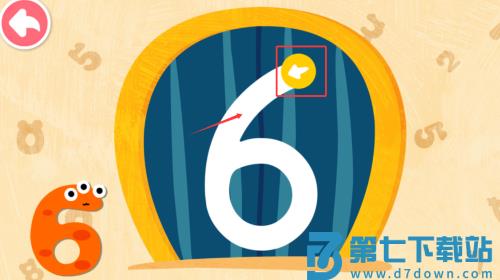 3、点击红框标注的黄色脚印,学习数字6的写法。