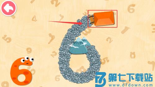 2、操控红框推土机,推到石子堆砌的数字6。