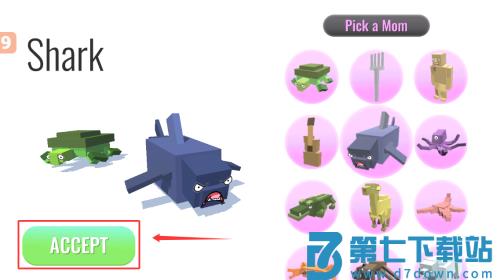 2、点击红框标注的ACCEPT按钮,确认选择鲨鱼角色。
