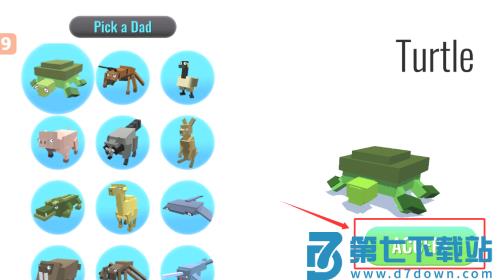 1、点击红框箭头指向的绿色ACCEPT按钮,确认选择乌龟爸爸角色。