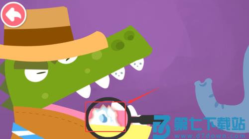 3、根据红框箭头提示,用放大镜检查鳄鱼牙齿。
