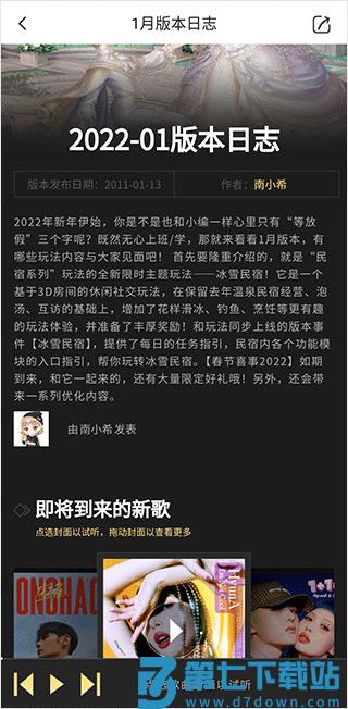 4、点击版本,进入日志还可以最新了解即将上线的歌曲,支持试听哦;