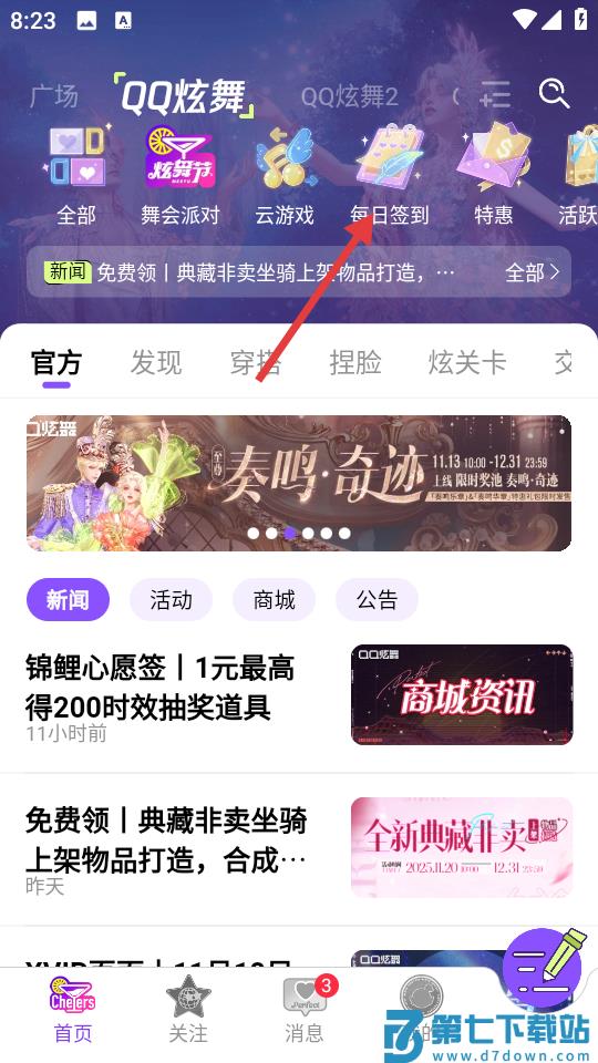 2、然后进入首页可以看到QQ炫舞的最新活动、新品以及版本修改信息等;