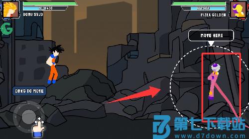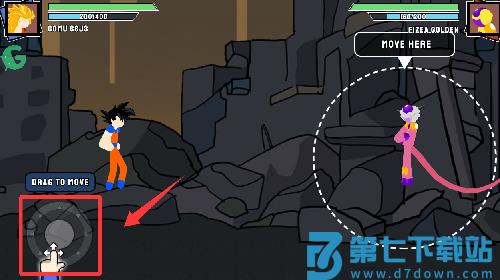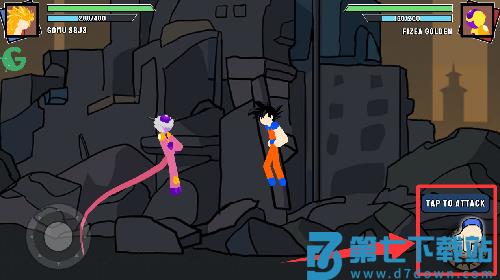 2、在不同的场景开始格斗,点击虚拟按键即可控制火柴人使用招式技能