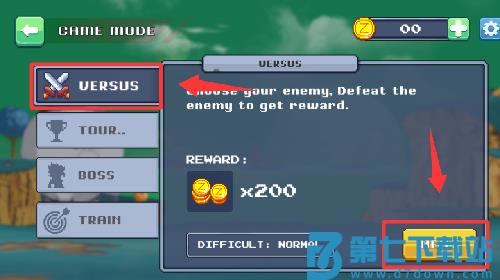 3、点击对战模式然后点击下一步并进入。