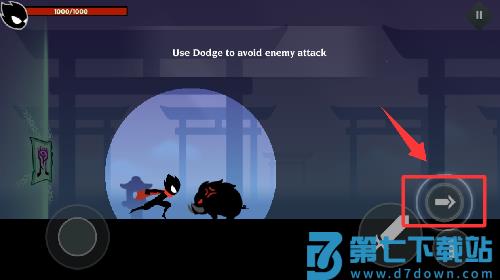 3、野猪过来攻击了,点击红色框框按键避开。