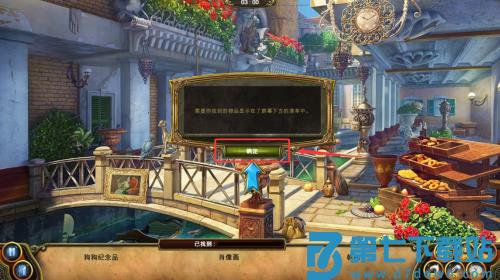 1、点击红框箭头指向的绿色提示按钮,获取找物线索。