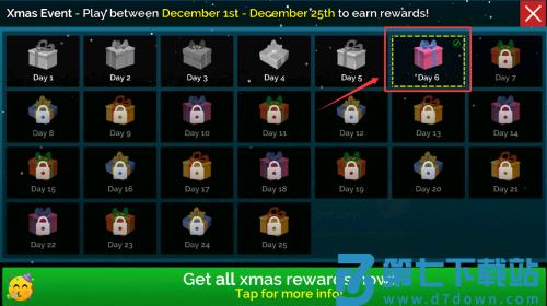 1、在圣诞活动日历上,领取红框标记的第六天奖励。