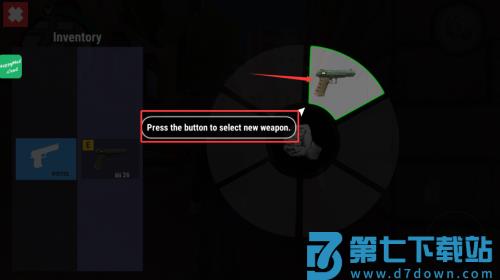 1、按红框箭头提示点击轮盘按钮,选择新武器。
