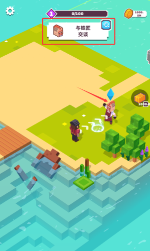 3、与红框箭头所指的铁匠交谈接取任务。