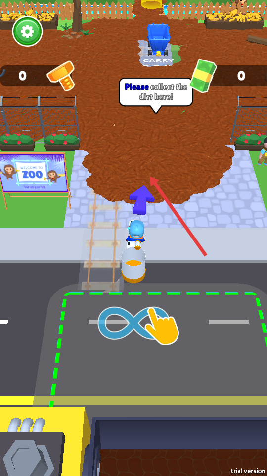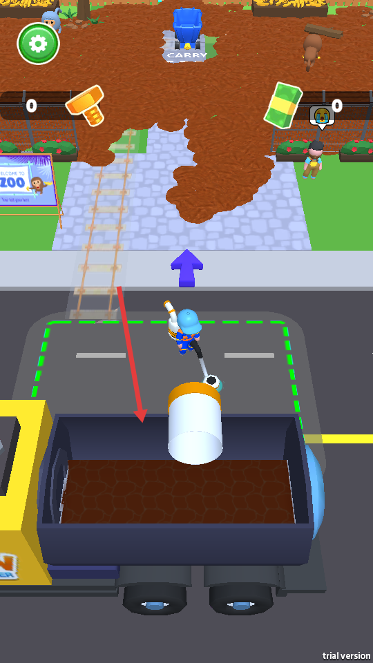 1、控制角色在动物园中移动,寻找并清理动物们产生的粪便,保持环境整洁。
