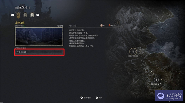 在边界缝隙处选择【普拉乌村庄】,任务会自动切换至【悲惨之夜】附加任务,玩家无需接取任务,进入后会直接触发。