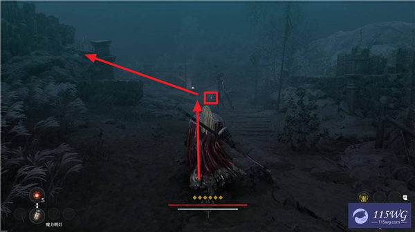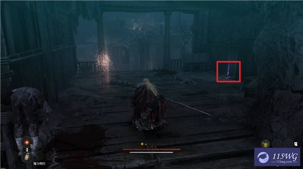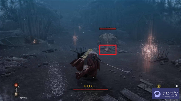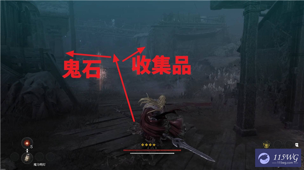 完成清理敌人后,移动到弓箭手所在的木桥下方。左侧的房间里,可以找到第一个【鬼石】。